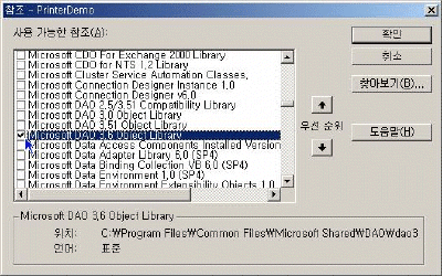 ¸ñ·Ï Áß¿¡¼­ ÃÖÀå ÃÖ±Ù ¹öÀüÀÇ Microsoft DAO 3.x Object Library¸¦ üũÇϰí È®ÀÎÇÏ¿© ´Ý´Â´Ù.