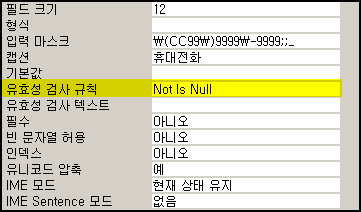 ¾Æ·¡ ±×¸²¿¡¼­ ÇʵåÀÇ À¯È¿¼º °Ë»ç±ÔÄ¢ ¼Ó¼º¿¡ Null À̶ó´Â Ű¿öµå°¡ »ç¿ëµÇ¾ú½À´Ï´Ù. À̰ÍÀº ¿¹¸¦ µé±â À§ÇÑ °ÍÀ¸·Î °á°ú´Â Çʼö ¼Ó¼ºÀ» <¿¹> ¼³Á¤ÇÑ °Í°ú °°½À´Ï´Ù.
