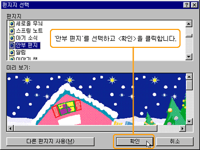 ÆíÁöÁö ¼±Åà ¸ñ·Ï¿¡¼­ '¾ÈºÎ ÆíÁö'¸¦ ¼±ÅÃÇϰí, <È®ÀÎ>À» Ŭ¸¯ÇÕ´Ï´Ù.
